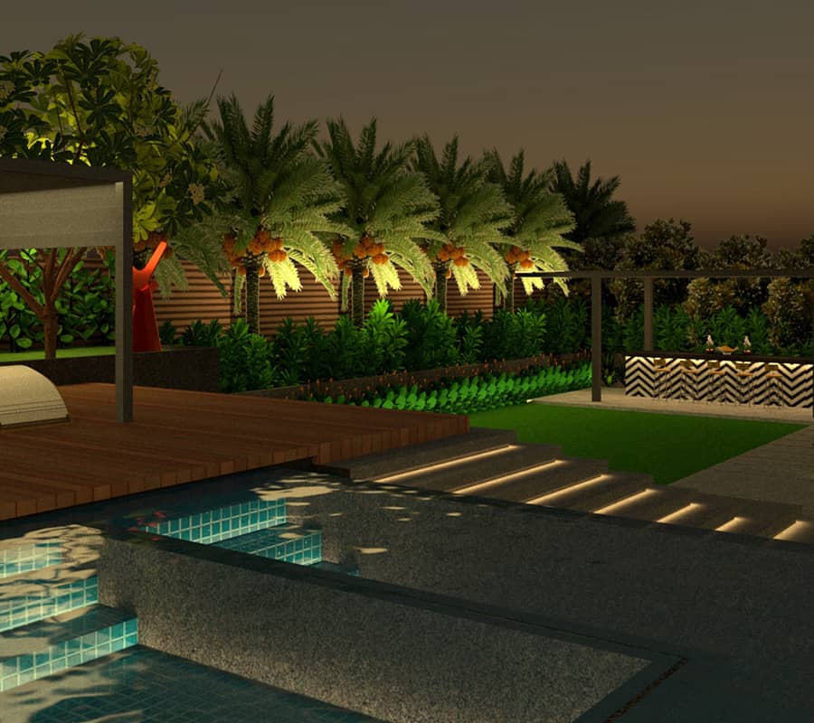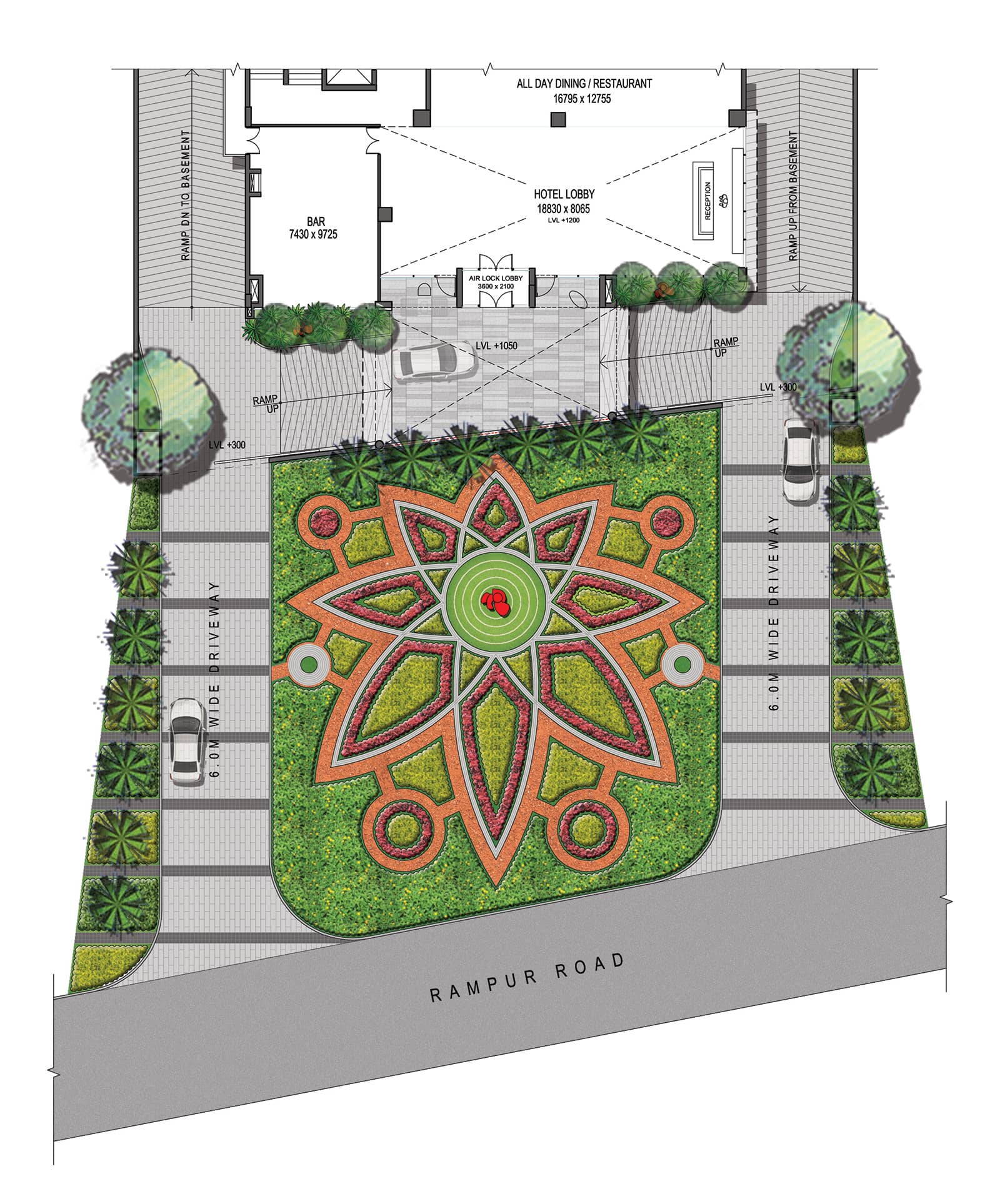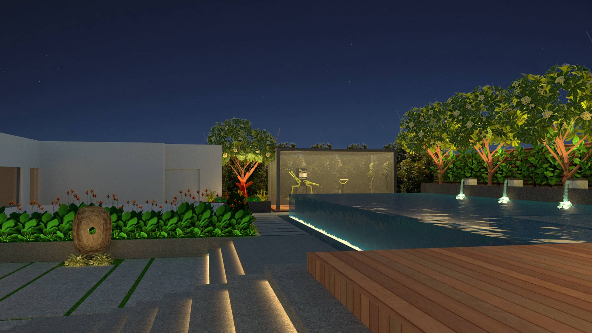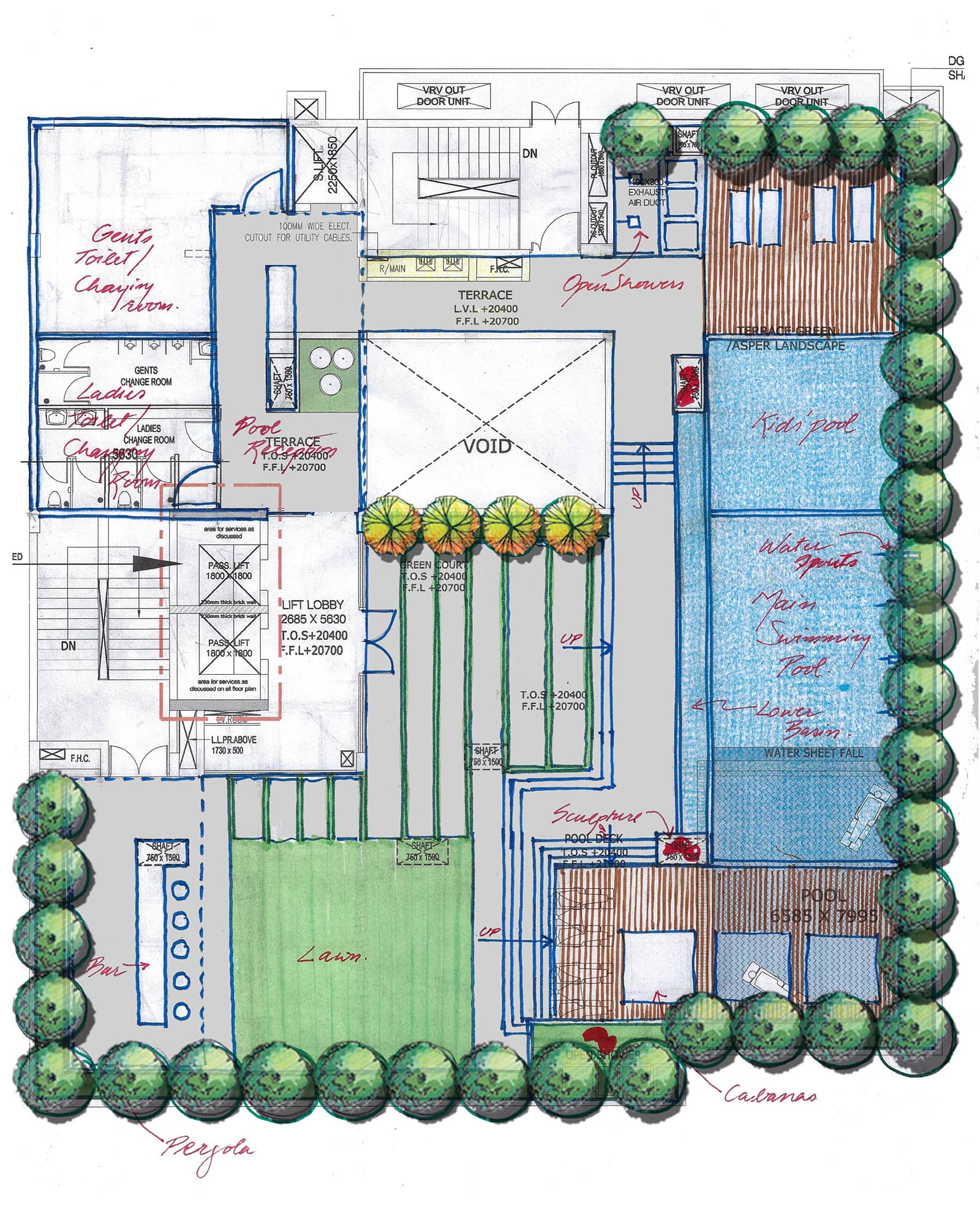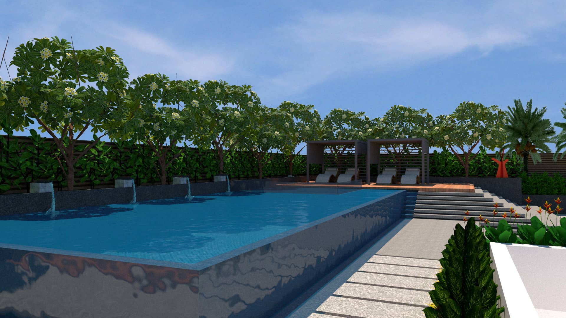 “Any hospitality project is incomplete without a space that they can use exclusively to relax and rejuvenate. This project has a landscaped terrace flowing with lush greens and a recreational pool with sitting spaces atop a wooden deck.”