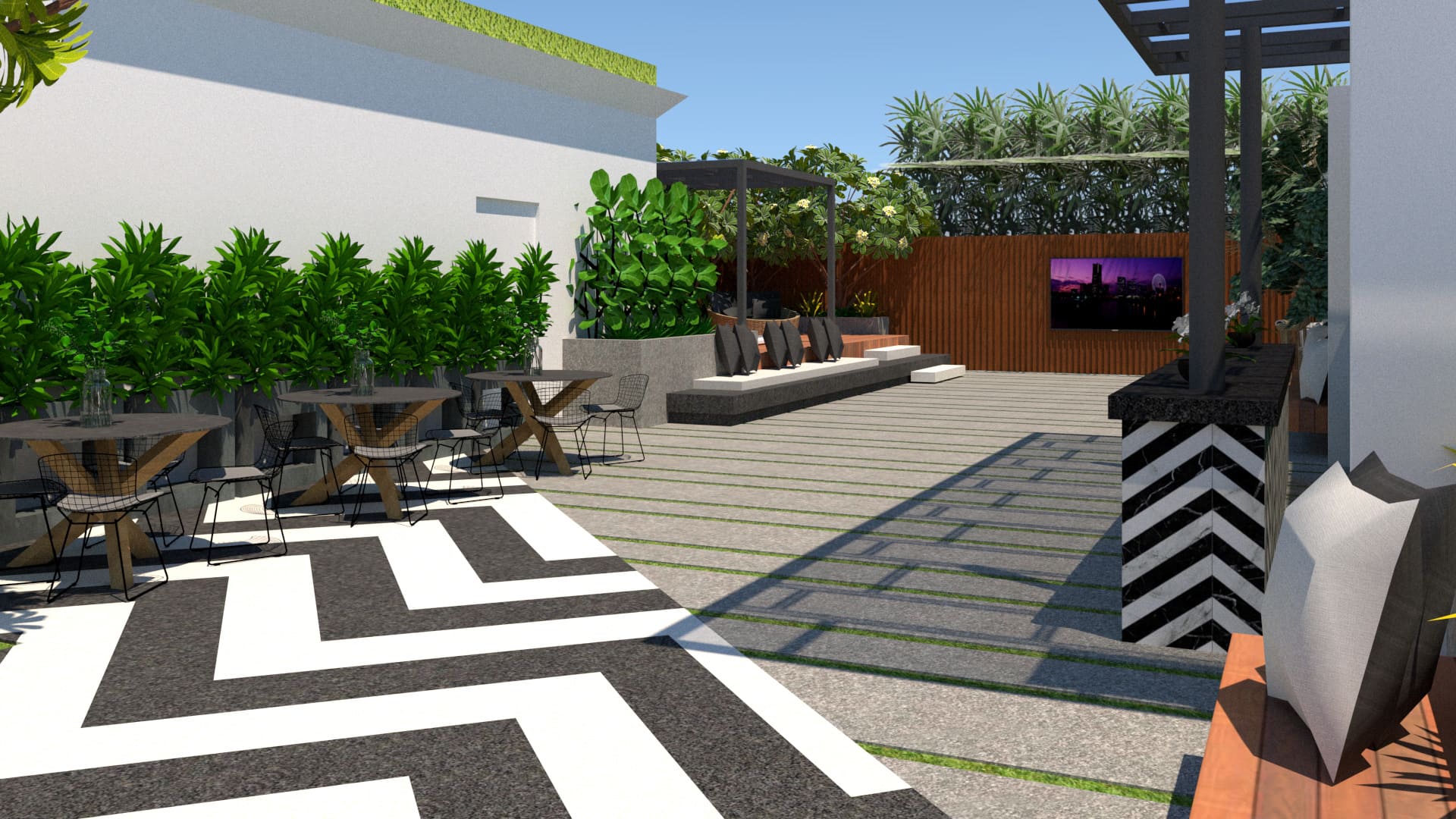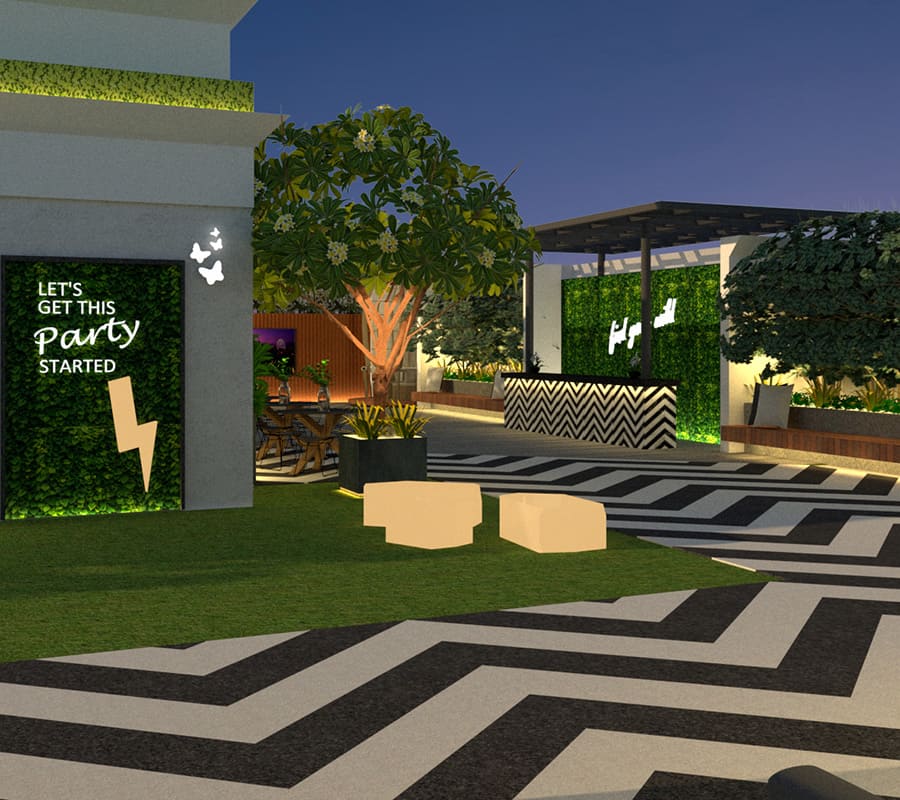 pools, lawns and aromatic plants and a restaurant themed terrace