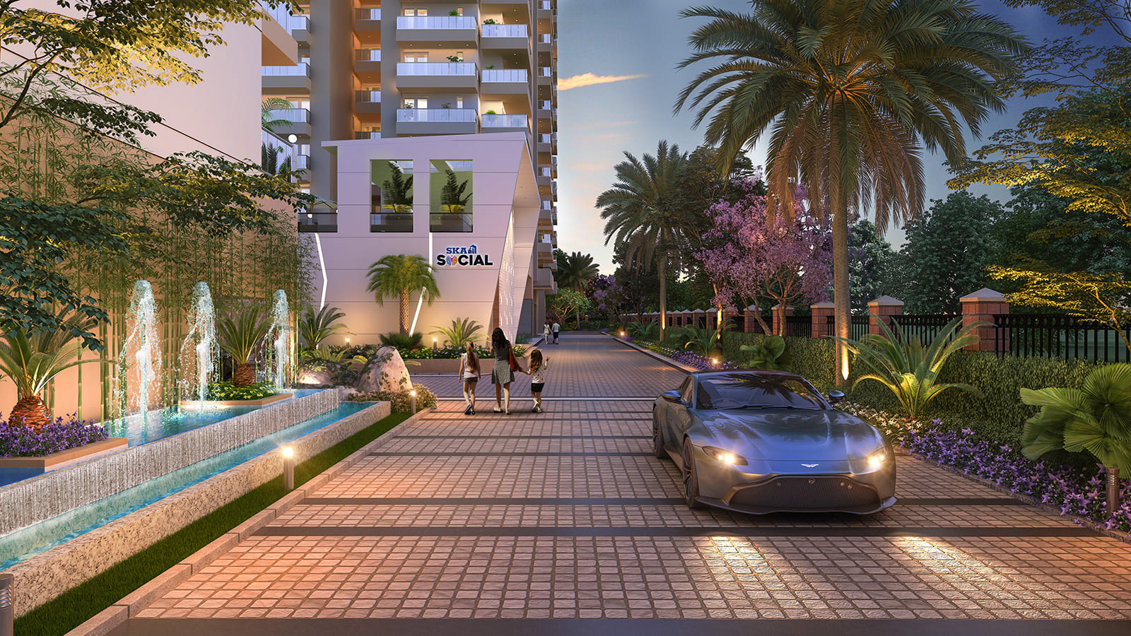 “A large plot of land housing only three towers leaves ample space for the site to be developed into a lush green area. Amenities such as a pool, play courts and pathways lined with trees induce a sense of comfort and calm that can only be found amidst the lap of nature.”