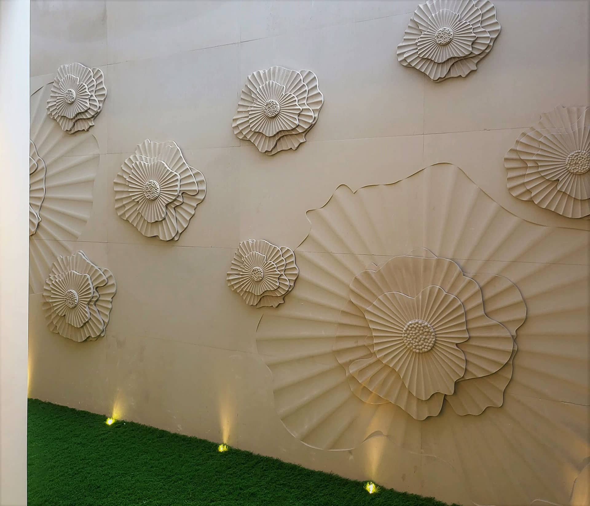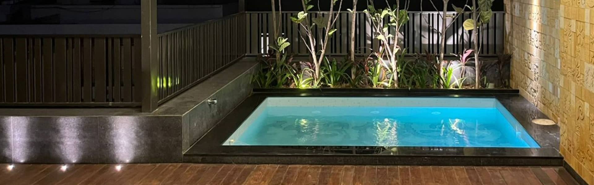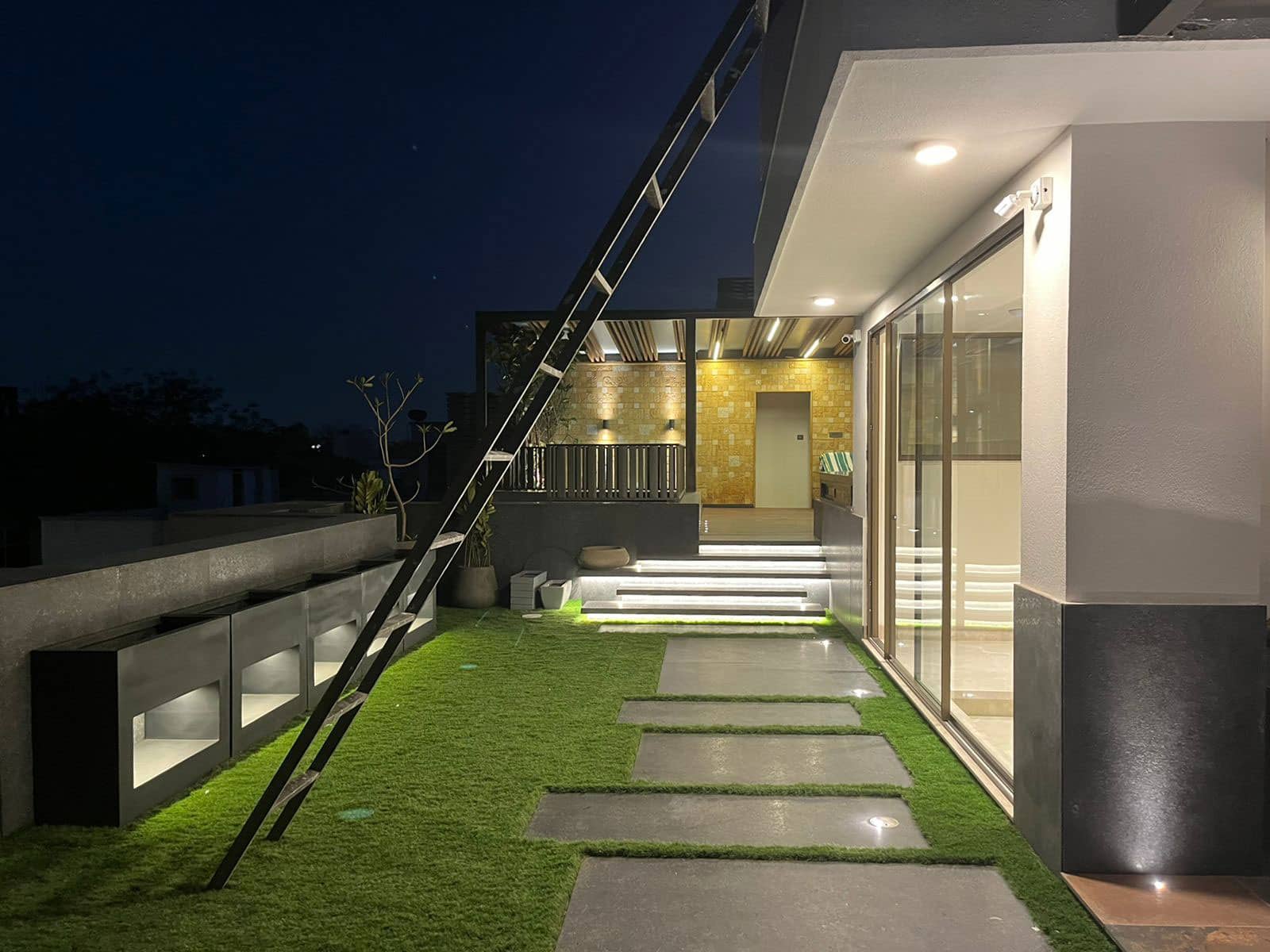 “The heart of this posh residence is its visual courtyard which is overlooked by most lobbies & bedrooms. The highlight of the central courtyard is the feature wall which is a combination of stone and green wall; breaking the verticality with interesting pattern giving a different view from each level. The terrace is adorned with lush green lawn and ornamental flowering plants surrounding the outdoor gym, pool, bar and outdoor covered sitting to destress oneself from day-long tiredness.”