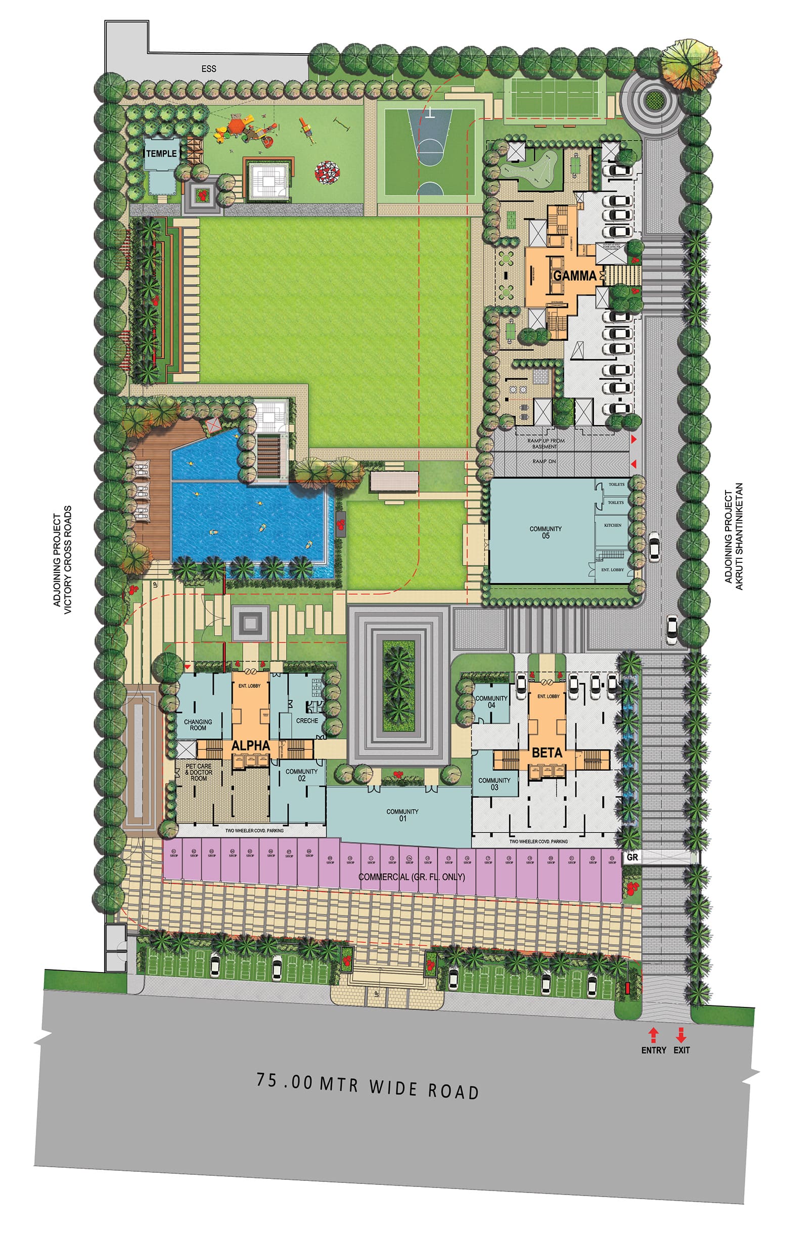 “A large plot of land housing only three towers leaves ample space for the site to be developed into a lush green area. Amenities such as a pool, play courts and pathways lined with trees induce a sense of comfort and calm that can only be found amidst the lap of nature.”
