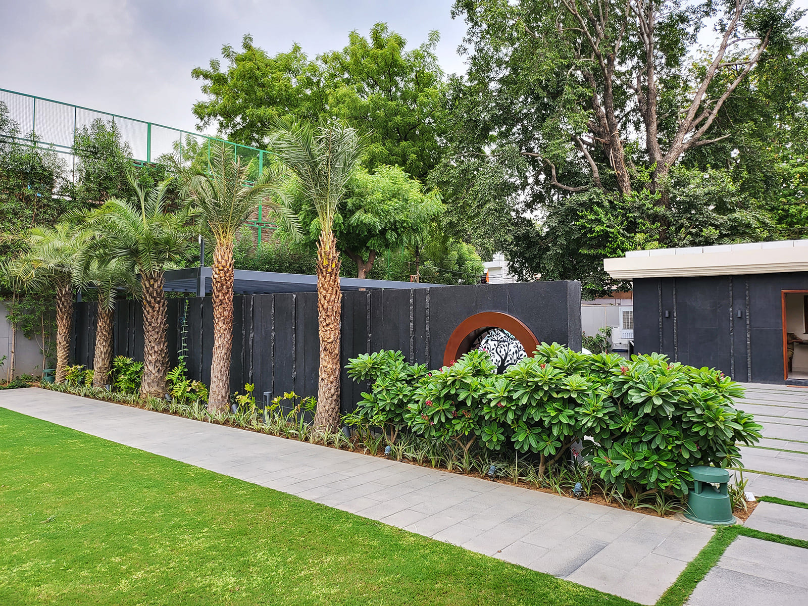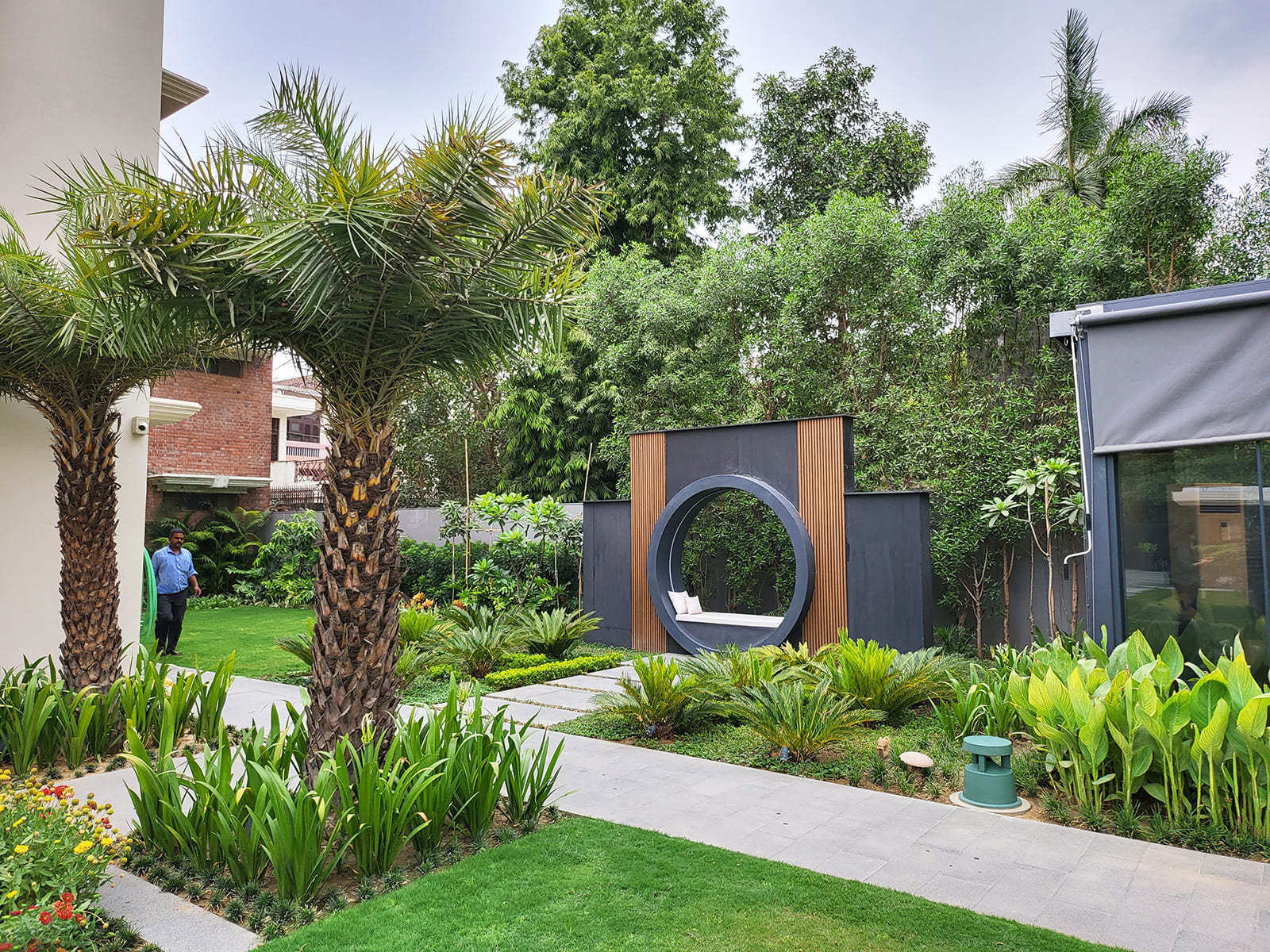 area that houses a residence with a touch of tropical landscape design